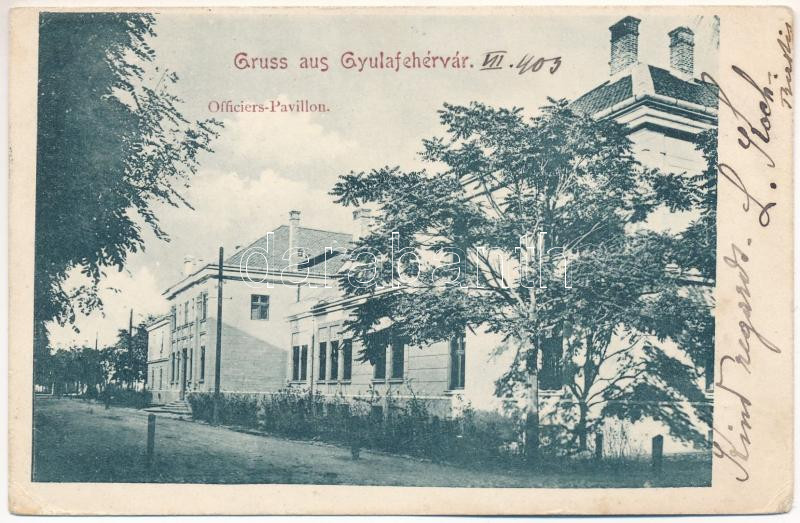 1903 Gyulafehérvár, Alba Iulia; Officiers-Pavillon / Tiszti pavilon / ... https://www.darabanth.com/hu/457-Gyorsarveres/457.0/Kepeslapok/Erdely~1000006/1903-Gyulafehervar-Alba-Iulia-Officiers-Pavillon-Tiszti-pavilon-officers-pavilion-EK~II3005257