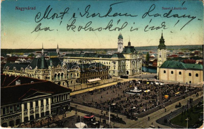 1913 Nagyvárad, Oradea; Szent László tér, piac, városháza, Általános T... https://www.darabanth.com/hu/457-Gyorsarveres/457.0/Kepeslapok/Erdely~1000006/1913-Nagyvarad-Oradea-Szent-Laszlo-ter-piac-varoshaza-Altalanos-Takarekpenztar-kav~II3056105