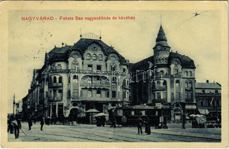 1915 Nagyvárad, Oradea; Fekete Sas nagyszálloda és kávéház, villamos, ... https://www.darabanth.com/hu/457-Gyorsarveres/457.0/Kepeslapok/Erdely~1000006/1915-Nagyvarad-Oradea-Fekete-Sas-nagyszalloda-es-kavehaz-villamos-Ernyei-Lajos-es-Cziller~II3024960