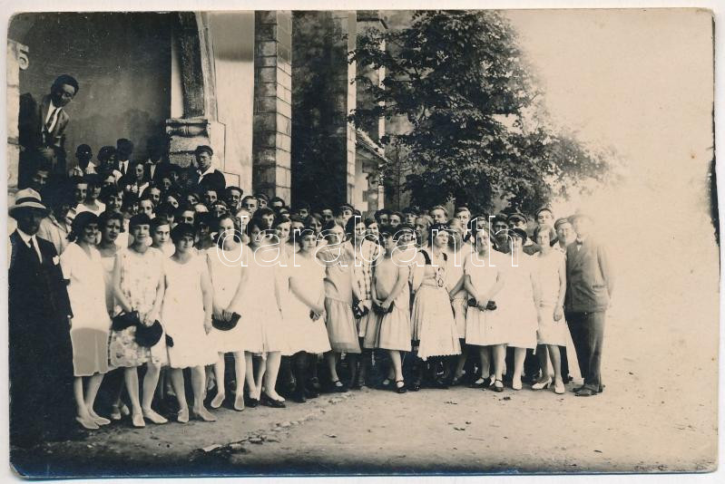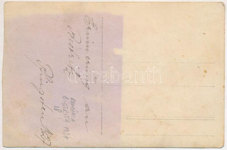Leírás: 1927 Beszterce, Bistritz, Bistrita; Erinnerung am Pfingsten / Pünkösdi ünnep, Studentika / Pentecost, Studentica. photo (vágott / cut)