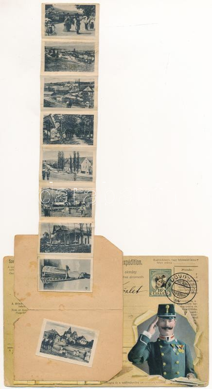 Báznafürdő, Bad Baassen, Baile Bazna; Postai szállítólevél leporello 9 mini képpel. Fritz Guggenberg kiadása / Postal consignment note - leporello with 9 mini pictures (Rb)
