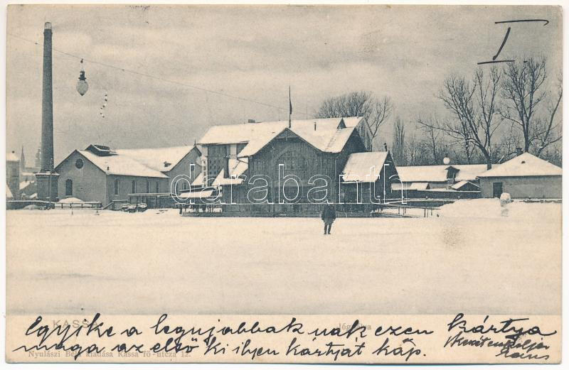 Leírás: 1903 Kassa, Kosice; Jégpálya télen. Nyulászi Béla kiadása / ice skating hall in winter