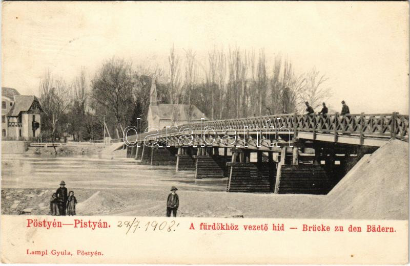 1908 Pöstyén, Piestany; A fürdőkhöz vezető híd. Lampl Gyula kiadása / ... https://www.darabanth.com/hu/457-Gyorsarveres/457.0/Kepeslapok/Felvidek~1000007/1908-Postyen-Piestany-A-furdokhoz-vezeto-hid-Lampl-Gyula-kiadasa-bridge-to-the-spa~II3058419