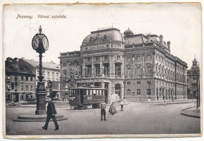 1918 Pozsony, Pressburg, Bratislava; Városi színház, villamos, óra, Bo... https://www.darabanth.com/hu/457-Gyorsarveres/457.0/Kepeslapok/Felvidek~1000007/1918-Pozsony-Pressburg-Bratislava-Varosi-szinhaz-villamos-ora-Bohr-Erno-uzlete-theatre~II3058377