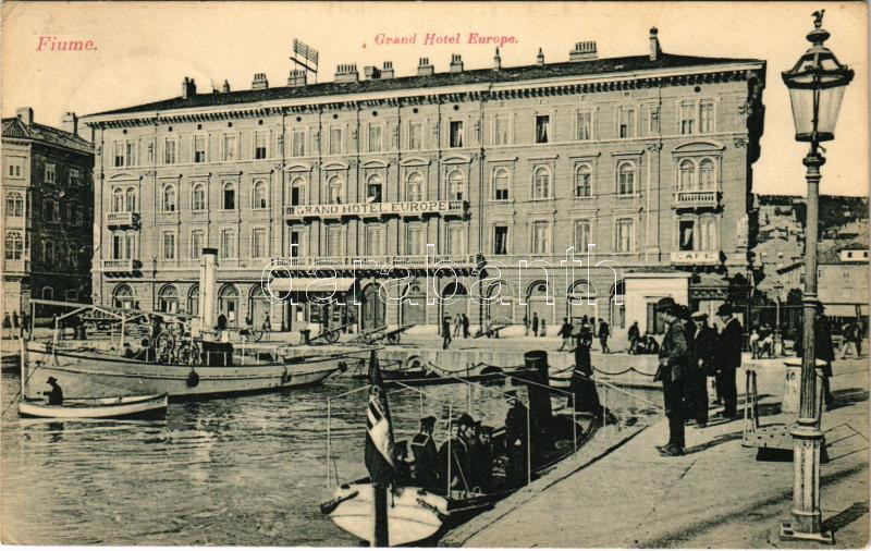 1906 Fiume, Rijeka; Grand Hotel Europe, K.u.k. Kriegsmarine Matrosen / Osztrák-magyar haditengerészet matrózai a szálloda előtt / Austro-Hungarian Navy mariners (EK)