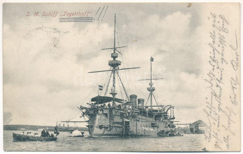 Leírás: 1906 SMS Tegetthoff az Osztrák-Magyar Haditengerészet Tegetthoff-osztályú csatahajója / K.u.K. Kriegsmarine / Austro-Hungarian Navy Tegetthoff-class battleship. A. Bonetti