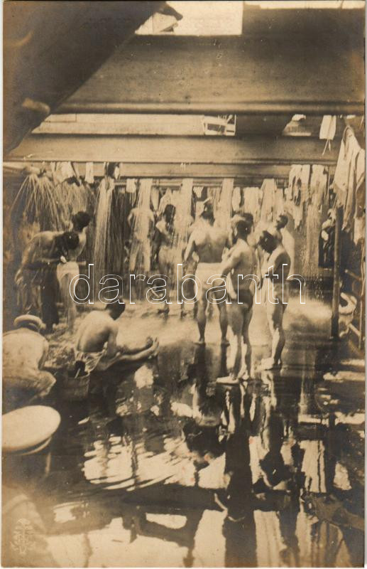 K.u.K. Kriegsmarine Matrosen / Osztrák-magyar matrózok zuhanyoznak a fedélzeten / Austro-Hungarian Navy mariners taking a shower on deck. Stephan Vlach photo