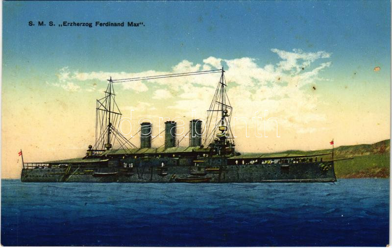 SMS Erzherzog Ferdinand Max az Osztrák-Magyar Haditengerészet Erzherzog-osztályú pre-dreadnought csatahajója / K.u.K. Kriegsmarine / WWI Austro-Hungarian Navy, Erzherzog-class pre-dreadnought battleship. G. Costalunga Pola 1914/15. (fl)