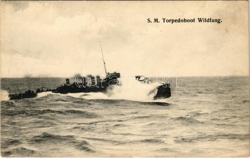 Leírás: SMS Wildfang az Osztrák-Magyar Haditengerészet Huszár-osztályú rombolója / K.u.K. Kriegsmarine SM Torpedobootzerstörer Wildfang / WWI Austro-Hungarian Navy Huszár-class torpedo destroyer SMS Wildfang. G. Fano Pola 1908-09. 20. (fl)