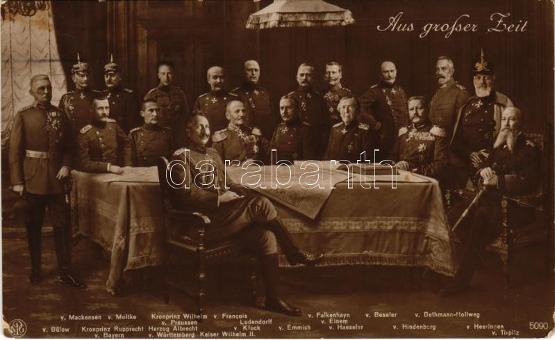 1915 Aus grosser Zeit, v. Mackensen, v. Moltke, Kronprinz Wilhelm v. Preussen, v. Francois Ludendorff, v. Falkenhayn, v. Einem, v. Beseler, v. Bethmann-Hollweg, v. Bülow, Kronprinz Rupprecht v. Bayern, Herzog Albrecht v. Württemberg, Kaiser Wilhelm II., v. Kluck, v. Emmich, v. Haeseler, v. Hindenburg, v. Heeringen, v. Tirptiz / German Emperor, Crown Prince and military leaders, WWI military (EK)