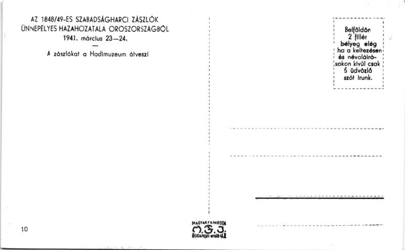 1941 Budapest I. Az 1848-49-es szabadságharci zászlók ünnepélyes hazahozatala Oroszországból. A zászlókat a Hadimúzeum átveszi / Russia returns the flags of the 1849-49 Hungarian war of independence