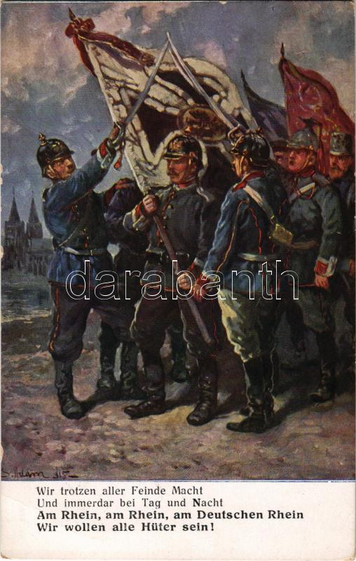 Am Rhein, am Rhein, am deutschen Rhein, wir wollen alle Hüter sein! / Első világháborús német katonai lap / WWI German military propaganda. A.F.W. III/2. Nr. 676. (EB)