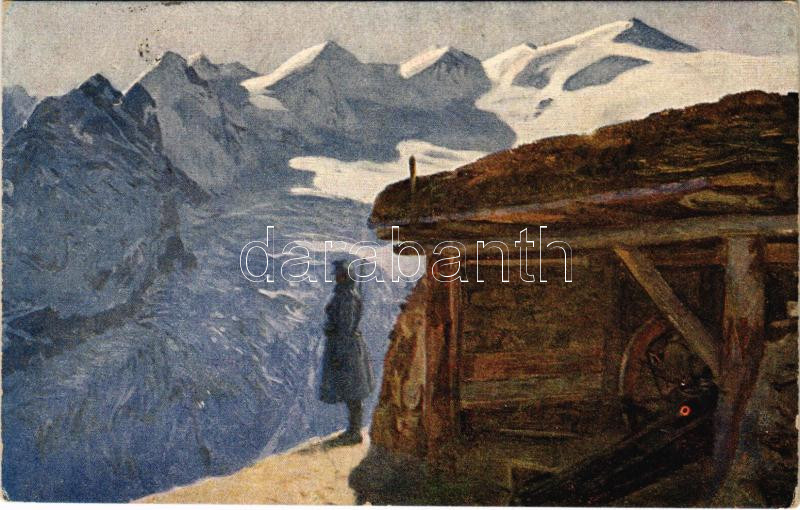Artilleriestellung am Stilfserjoch (Südtirol). Offizielle Karte für Rotes Kreuz, Kriegsfürsorgeamt, Kriegshilfsbüro Nr. 539. / WWI Austro-Hungarian K.u.K. military art postcard, artillery position in the Stelvio Pass (South Tyrol) s: Karl M. Schuster (EK)