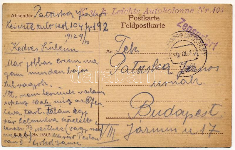 Leírás: Der sichere Schüßs / WWI German military art postcard. S.V.D. Nr. 1561/3. s: K. Pommerhanz + "K.u.K. Leichte Autokolonne Nr. 104" (ázott / wet damage)