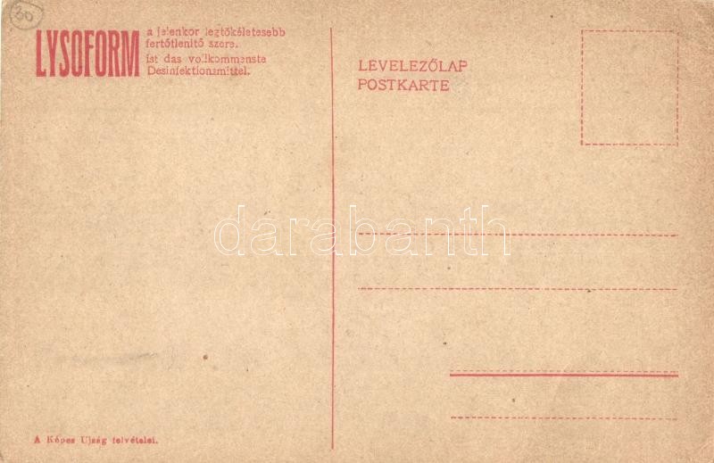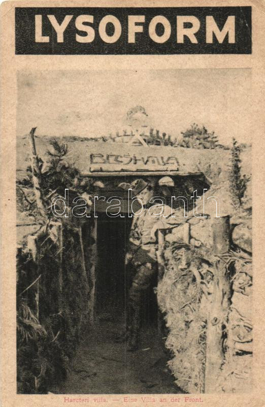Harctéri villa, a Képes Újság felvételei; hátoldalán Lysoform reklám /... https://www.darabanth.com/hu/457-Gyorsarveres/457.0/Kepeslapok/Katonai~1000032/Harcteri-villa-a-Kepes-Ujsag-felvetelei-hatoldalan-Lysoform-reklam-WWI-military-card-mi~II1043718