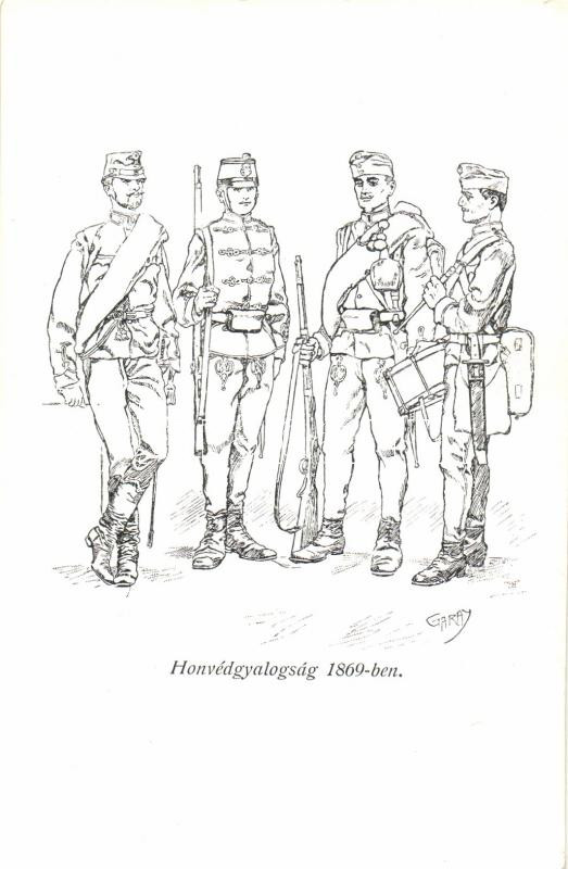 Honvédgyalogság 1869-ben / Hungarian military infantry in 1896 s: Gara... https://www.darabanth.com/hu/457-Gyorsarveres/457.0/Kepeslapok/Katonai~1000032/Honvedgyalogsag-1869-ben-Hungarian-military-infantry-in-1896-s-Garay-EK~II1046159