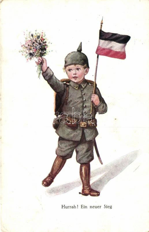 Hurrah! Ein neuer Sieg! German soldier boy, propaganda (fa) https://www.darabanth.com/hu/457-Gyorsarveres/457.0/Kepeslapok/Katonai~1000032/Hurrah-Ein-neuer-Sieg-German-soldier-boy-propaganda-fa~II987643