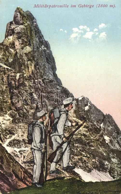 Militärpatrouille im Gebirge / Military patrol in the mountains https://www.darabanth.com/hu/457-Gyorsarveres/457.0/Kepeslapok/Katonai~1000032/Militarpatrouille-im-Gebirge-Military-patrol-in-the-mountains~II1015350