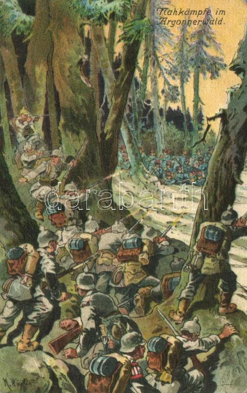 Nahkämpfe im Argonnerwald / battle, artist signed (Rb) https://www.darabanth.com/hu/457-Gyorsarveres/457.0/Kepeslapok/Katonai~1000032/Nahkampfe-im-Argonnerwald-battle-artist-signed-Rb~II1014163