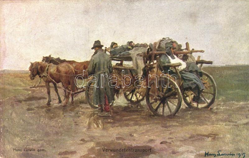 Leírás: Verwundetentransport / Wounded transportation, Kriegsfürsorgeamt Kriegshilfsbüro Nr. 398. s: Hans Larwin (Rb)