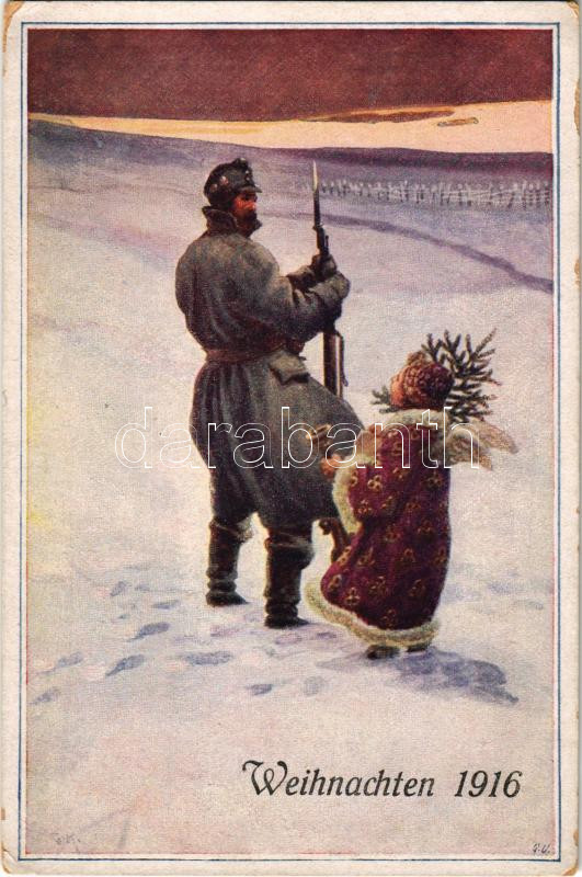 Leírás: Weihnachten 1916. Offizielle Karte für Rotes Kreuz, Kriegsfürsorgeamt Kriegshilfsbüro K.F.A. Weihnachtsserie 4. / WWI Austro-Hungarian K.u.K. military art postcard, Christmas (EK)