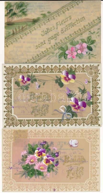 Leírás: 10 db RÉGI francia kézzel készült műanyag képeslap / 10 pre-1945 hand-made celluloid postcards