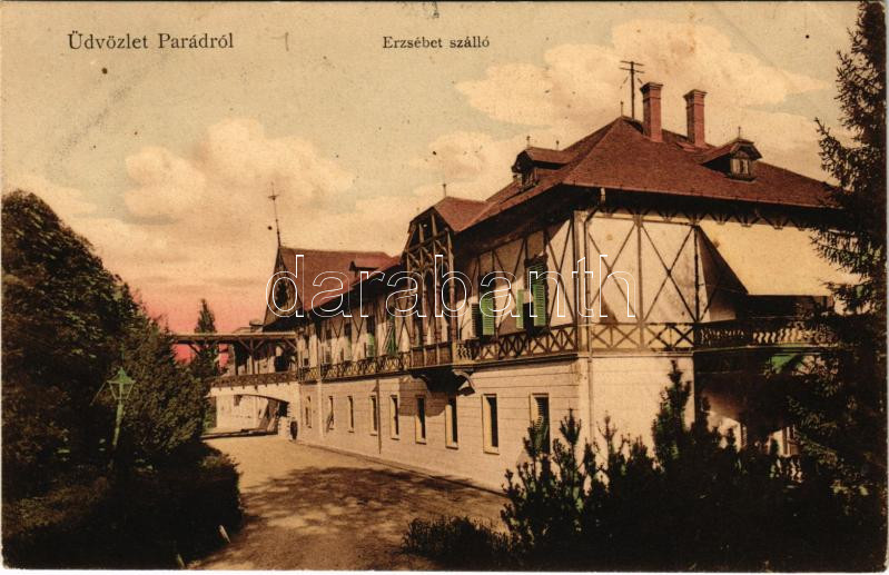 1910 Parád, Erzsébet szálloda. Fogyasztási szövetkezet kiadása (fl) https://www.darabanth.com/hu/457-Gyorsarveres/457.0/Kepeslapok/Magyarorszag~1000005/1910-Parad-Erzsebet-szalloda-Fogyasztasi-szovetkezet-kiadasa-fl~II3059523