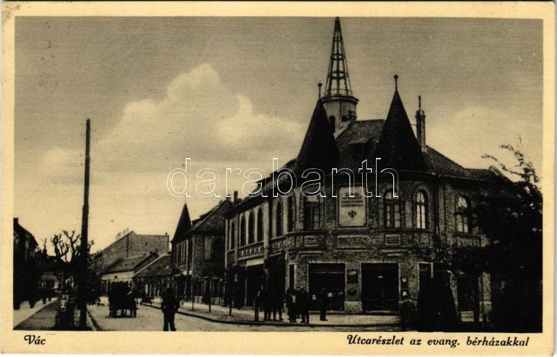 1935 Vác, utca, evangélikus bérházak az Eötvös és Széchenyi utca sarká... https://www.darabanth.com/hu/457-Gyorsarveres/457.0/Kepeslapok/Magyarorszag~1000005/1935-Vac-utca-evangelikus-berhazak-az-Eotvos-es-Szechenyi-utca-sarkan-EK~II3052923