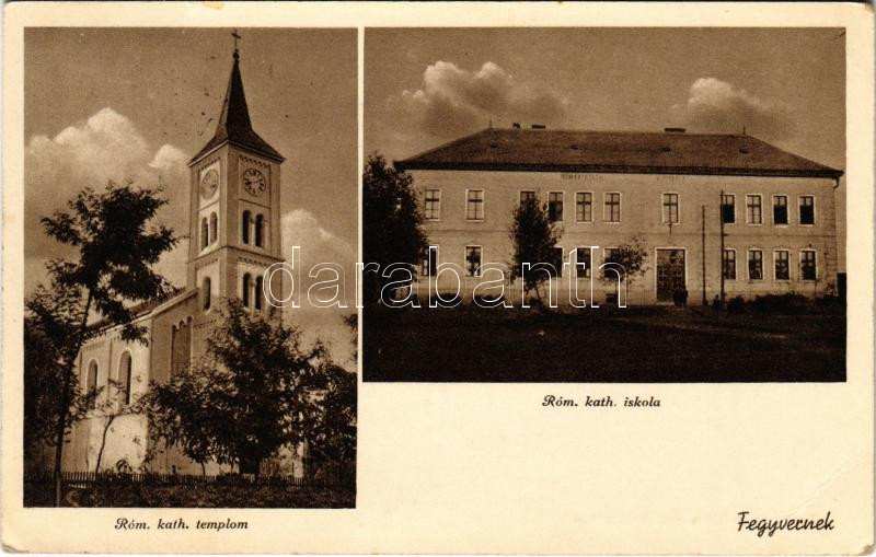 1941 Fegyvernek, Római katolikus templom és iskola (EB) https://www.darabanth.com/hu/457-Gyorsarveres/457.0/Kepeslapok/Magyarorszag~1000005/1941-Fegyvernek-Romai-katolikus-templom-es-iskola-EB~II3053536