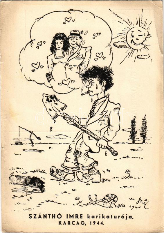 1944 Karcag, Szánthó Imre karikatúrája (EB) https://www.darabanth.com/hu/457-Gyorsarveres/457.0/Kepeslapok/Magyarorszag~1000005/1944-Karcag-Szantho-Imre-karikaturaja-EB~II3055869