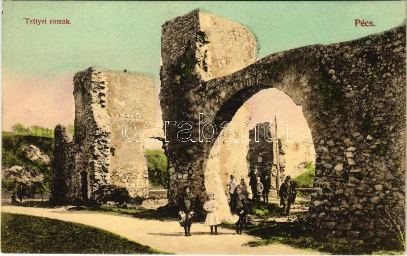 Pécs, Tettyei romok. Divald Károly 1642-1907. https://www.darabanth.com/hu/457-Gyorsarveres/457.0/Kepeslapok/Magyarorszag~1000005/Pecs-Tettyei-romok-Divald-Karoly-1642-1907~II3052462