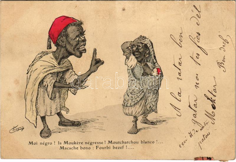 Leírás: Moi négro! la Moukere négresse! Moutchatchou blanco!... Macache bono: Fourbi bezef! / Algériai humor / Algerian humour s: L. Chagny (fl)