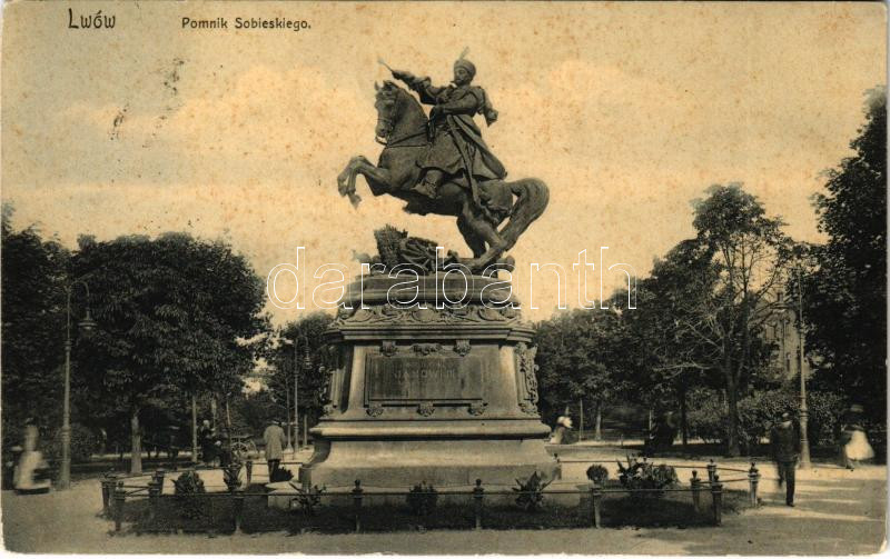 Lviv, Lwów, Lemberg; Pomnik Sobieskiego / statue (EK) https://www.darabanth.com/hu/457-Gyorsarveres/457.0/Kepeslapok/Ukrajna~1000089/Lviv-Lwow-Lemberg-Pomnik-Sobieskiego-statue-EK~II2835123