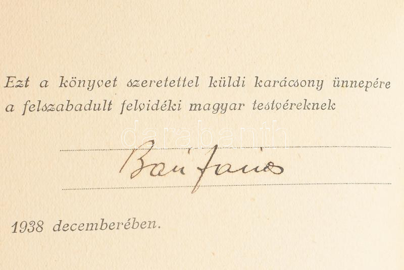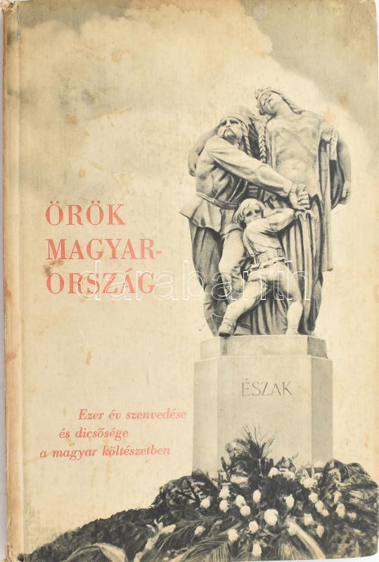 Örök Magyarország. Ezer év szenvedése és dicsősége a magyar költészetben. A Magyar Könyvkiadók és Könyvkereskedők ajándéka a felszabadult felvidéki magyar testvéreknek. Bp., 1938, Magyar Könyvkiadók és Könyvkereskedők Országos Egyesülete. 1938 karácsonya, névre szóló példány. Kiadói kartonált papírkötés, kissé kopott, kissé foltos borítóval, kissé sérült gerinccel.
