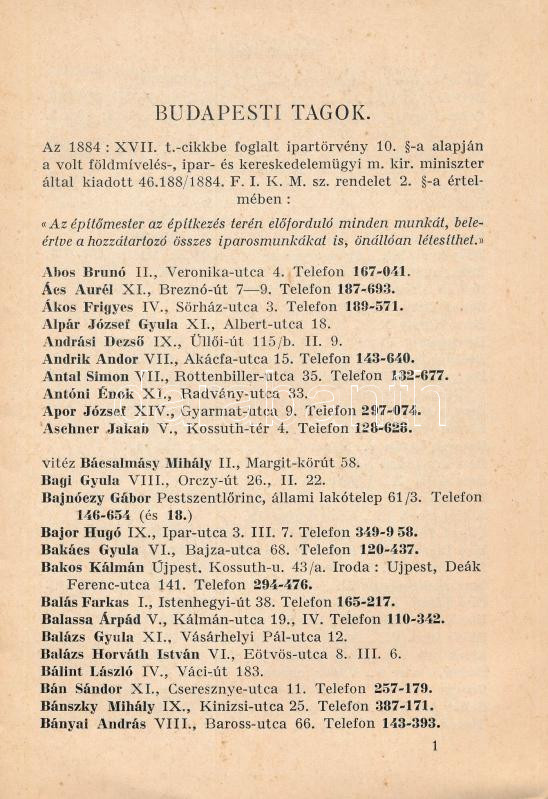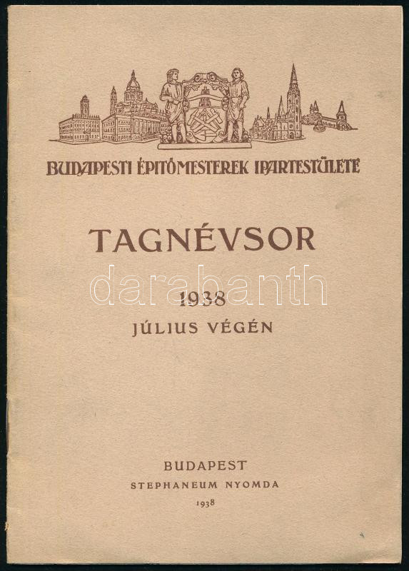 1938 Budapesti Építőmesterek Ipartestülete tagnévsor. 1938 július végén. Bp., 1938., Budapesti Építőmesterek Ipartestülete,(Stephaneum-ny.), 20 p. Kiadói papírkötés.