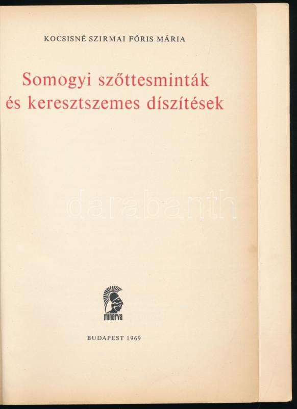 Kocsisné Szirmai Fóris Mária: Somogyi szőttesminták és keresztszemes d... https://www.darabanth.com/hu/457-Gyorsarveres/457.0/Konyvek/Konyvek-Epiteszet-muveszet~2000364/Kocsisne-Szirmai-Foris-Maria-Somogyi-szottesmintak-es-keresztszemes-diszitesek-iszavidek~II3053828