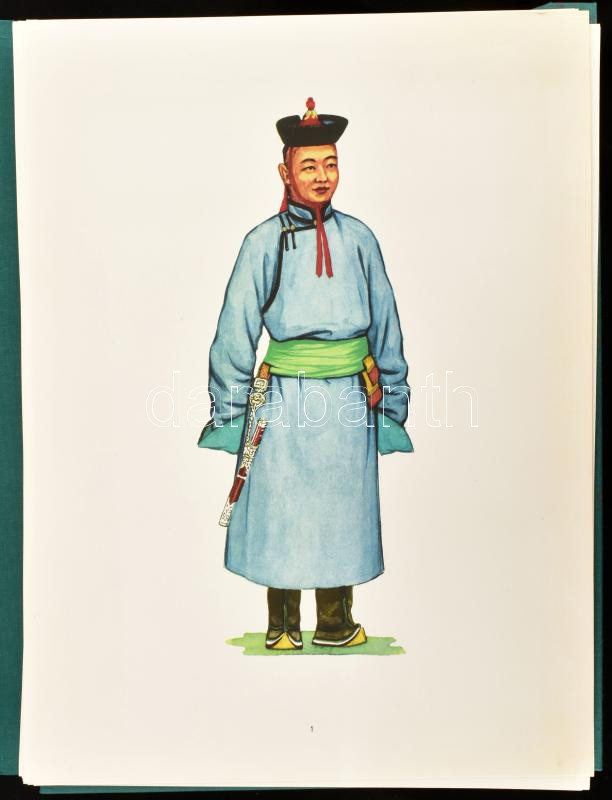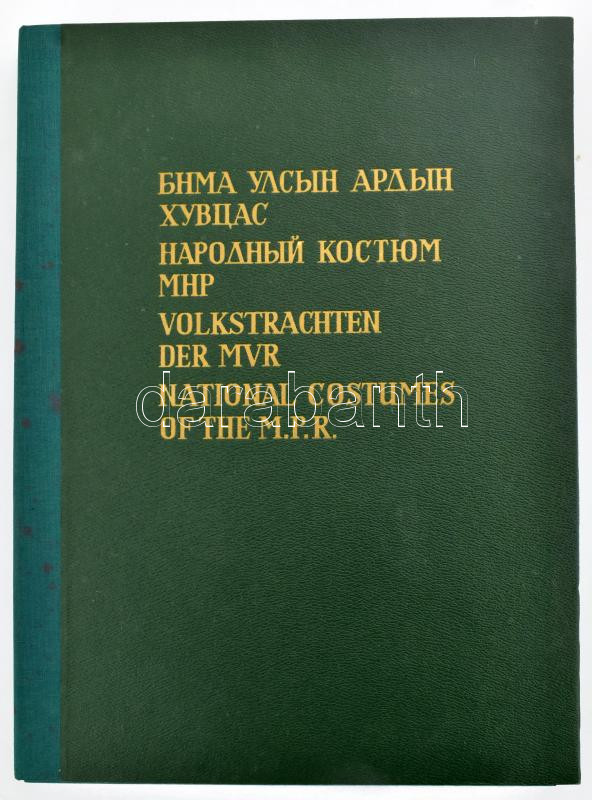 National Costumes of the M.P.R. (A Mongol Népköztársaság népviseletei). Ulaanbaatar, 1967, Ulsyn Khevlel, 12 sztl. lev.+ 100 (színes képtáblák) t. Mongol, orosz, német és angol nyelven. Kiadói félvászon-mappában, gerince kissé foltos, 35x26 cm.