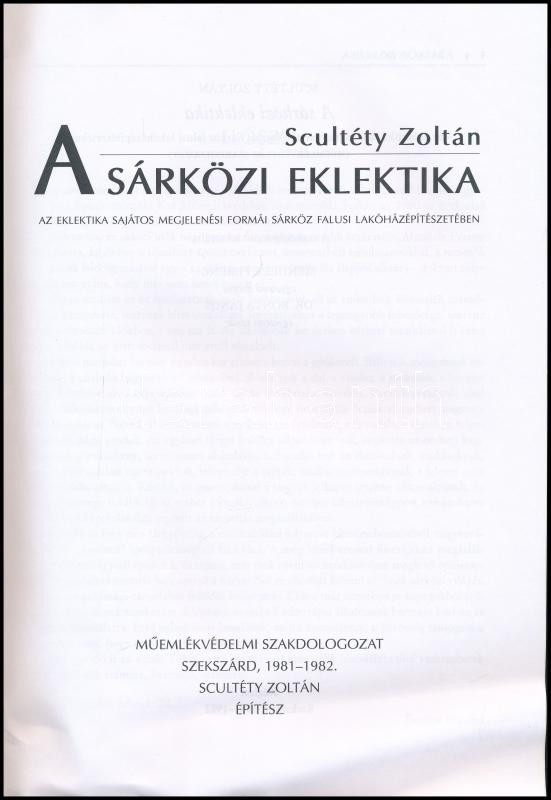 Leírás: Scultéty Zoltán: A sárközi eklektika. Az eklektika sajátos megjelenési formái Sárköz falusi lakóházépítészetében. (Műemlékvédelmi szakdolgozat). Szekszárd, 2008, szerzői kiadás. Fekete-fehér képekkel illusztrálva. Kiadói papírkötés.
