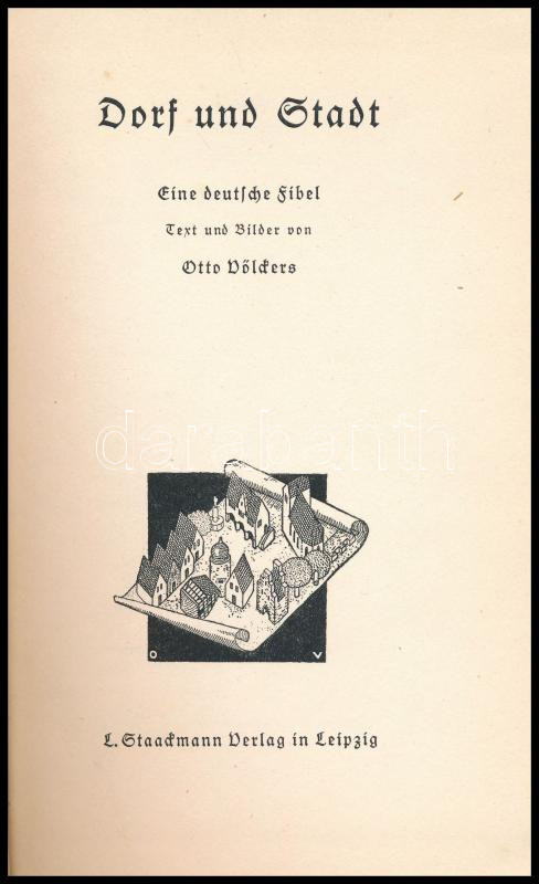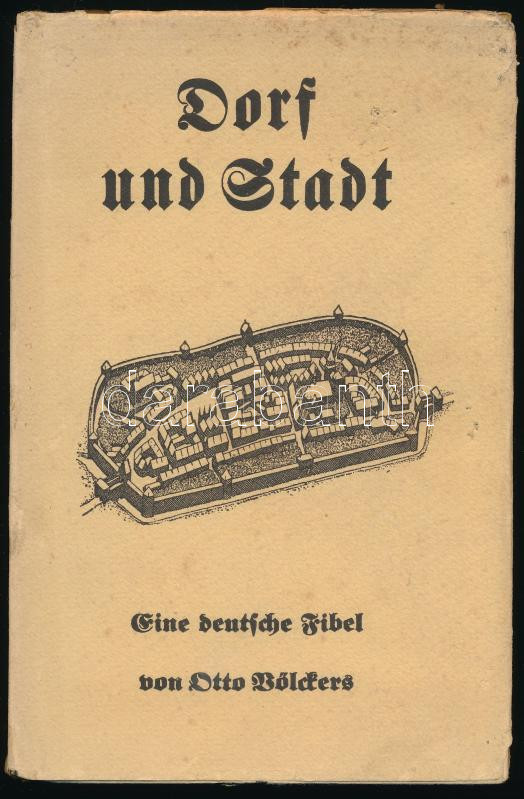 Völckers, Otto: Dorf und Stadt. Eine deutsche Fibel. Leipzig, 1942, L. Staackmann, 130+(2) p. Számos szövegközi illusztrációval. Német nyelven. Kiadói kartonált papírkötés, kissé sérült borítóval, sérült kiadói papír védőborítóban,