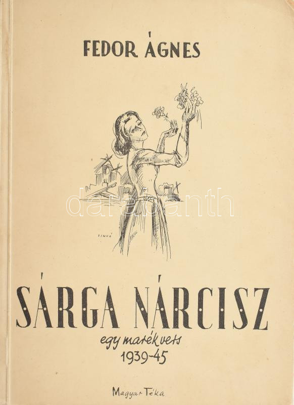Fedor Ágnes: Sárga nárcisz. Egy marék vers. 1939-1945. Bp., 1945, Magyar Téka, 47+1 p. Második kiadás. A címlap és a rajzok Sinkó Károly munkái. Kiadói illusztrált papírkötés.