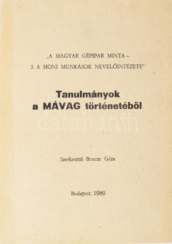 "A magyar gépipar minta - s a honi munkások nevelőintézete." Tanulmányok a MÁVAG történetéből. Szerk.: Bencze Géza. Bp., 1989, Magyar Történelmi Társulat Üzemtörténeti Szakosztálya. Kiadói papírkötés