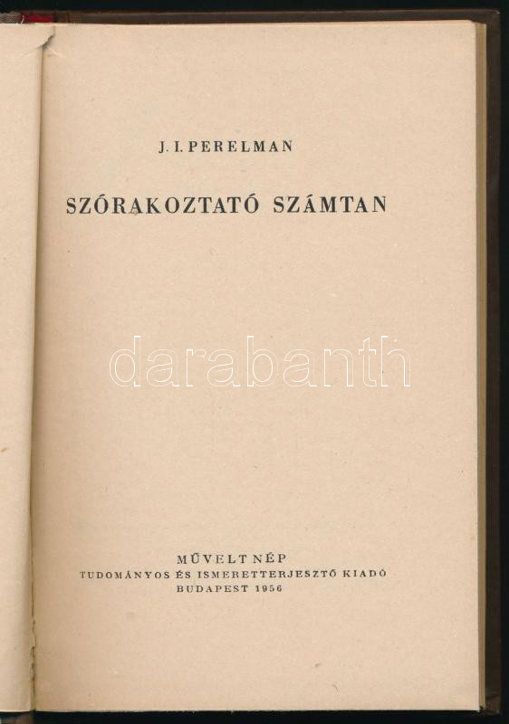 J. I. Perelman: Szórakoztató számtan. Ford.: Bizám György. Bp., 1956, Művelt Nép, 184 p. Kiadói illusztrált félvászon-kötés. Megjelent 5000 példányban.