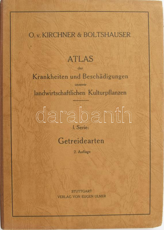 O. Kirchner - H. Boltshauser: Atlas der Krankheiten und Beschädigungen unserer landwirtschaftlichen Kulturpflanzen. I. Serie: Getreidearten. Stuttgart, én., Eugen Ulmer. XXIV táblával. Német nyelven. 2. kiadás. Kiadói félvászon mappában.