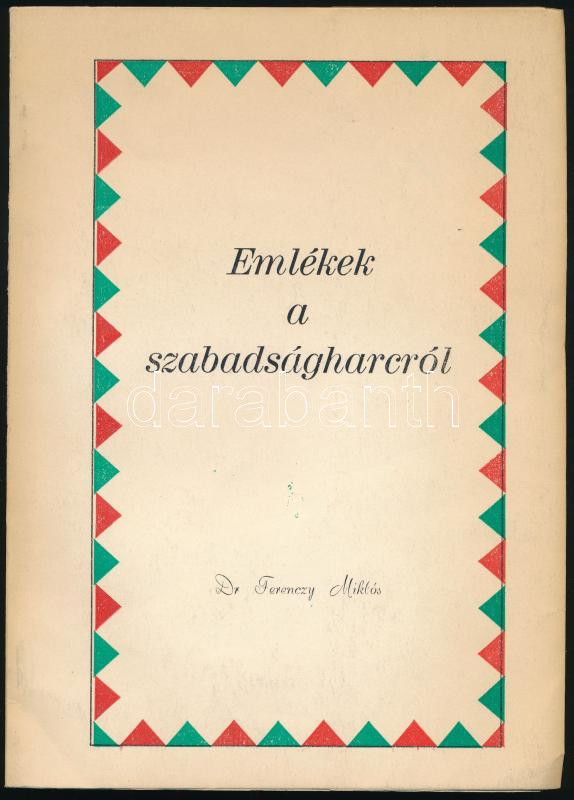 Dr. Ferenczy Miklós: Emlékek a szabadságharcról 1848/49. Tatabánya, 19... https://www.darabanth.com/hu/457-Gyorsarveres/457.0/Konyvek/Konyvek-Tortenelem~1500020/Dr-Ferenczy-Miklos-Emlekek-a-szabadsagharcrol-184849-Tatabanya-1978-Hazafias-Nepfront-Ko~II3061940