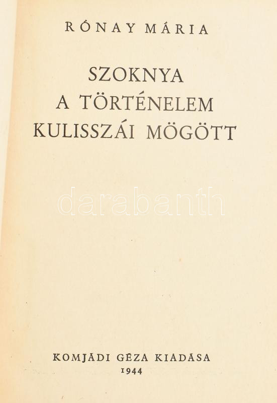 Rónay Mária: Szoknya a történelem kulisszái mögött. (Bp.), 1944, Komjá... https://www.darabanth.com/hu/457-Gyorsarveres/457.0/Konyvek/Konyvek-Tortenelem~1500020/Ronay-Maria-Szoknya-a-tortenelem-kulisszai-mogott-Bp-1944-Komjadi-Geza-Athenaeum-ny~II3052872