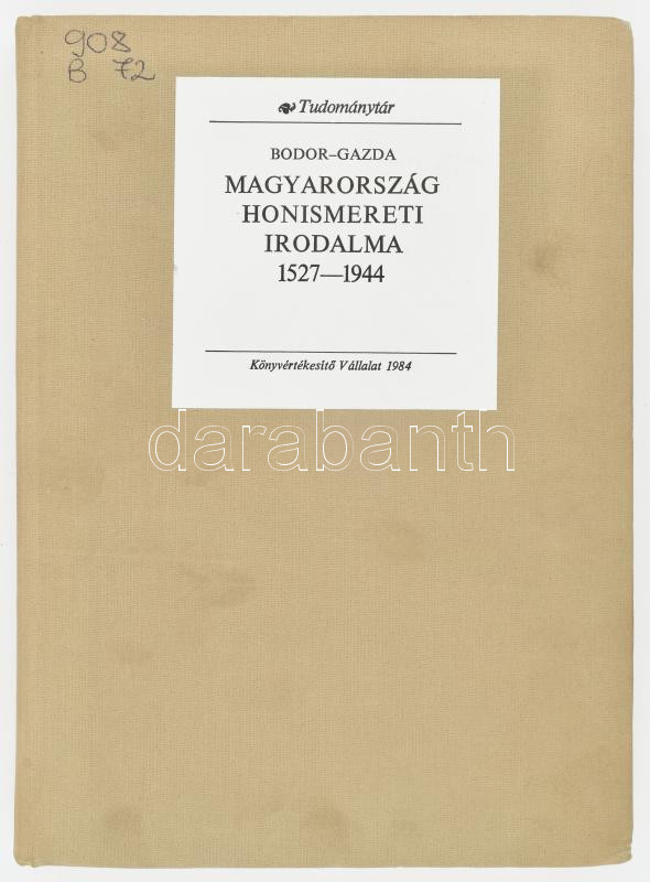 Bodor Antal dr.- Gazda István dr.: Magyarország honismereti irodalma 1527-1944. Budapest, 1984, Könyvértékesítő Vállalat. Kiadói egészvászon kötésben, enyhe sérüléssel a borítón.