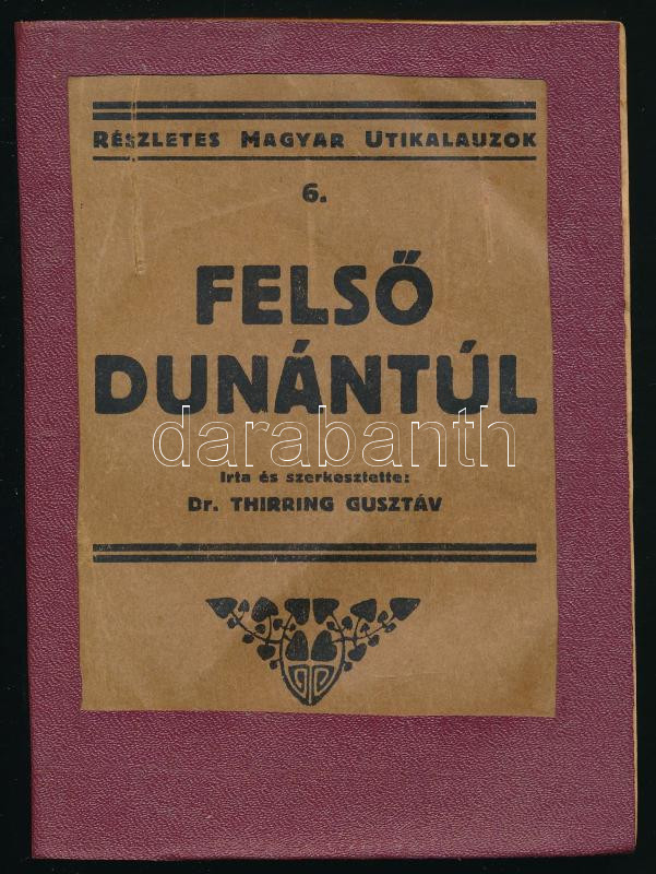 Thirring Gusztáv dr.: Felső Dunántúl. 8db térkép melléklettel (3db hiányzik). Budapest, 1933, A Turistaság és Alpinizmus Lap-, Könyv - és Térkép kiadó. Későbbi egészvászon kötésben, az eredeti papírborítót ráragasztották, utolsó lap kissé sérült.