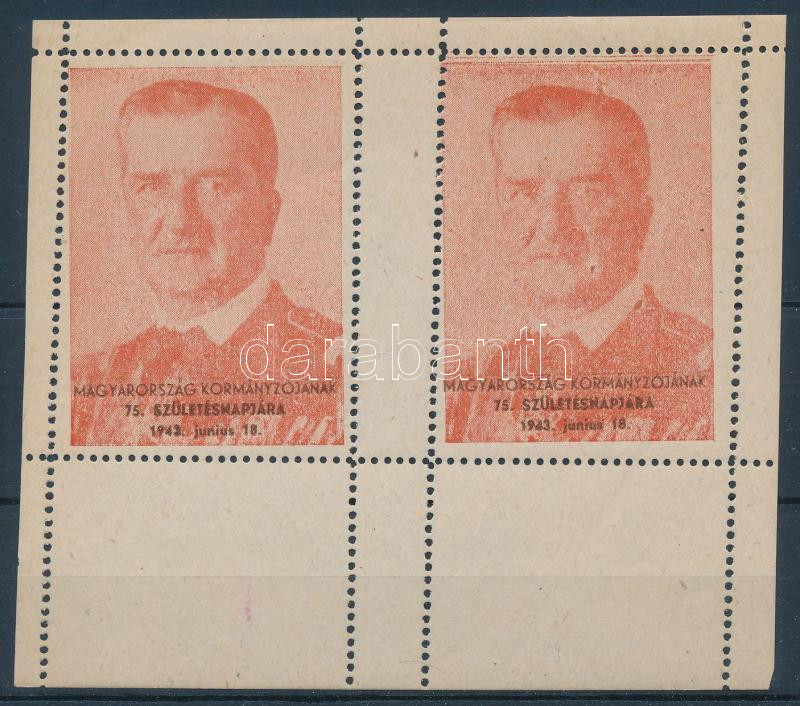 Leírás: 1943 Horty 75. születésnapja levélzáró kisív gépszínátnyomattal / label mini sheet with mashine offset