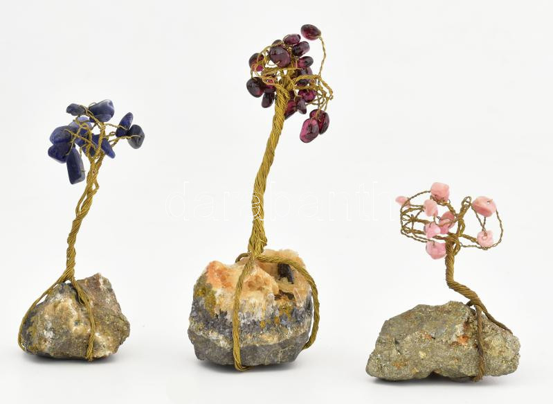 Leírás: Pirit, kalkopirit és kalcit ásványokra aplikált szerencsefa, 3 db