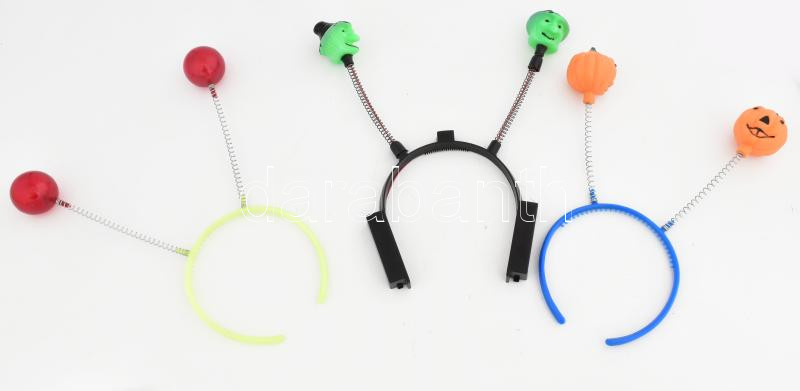 Leírás: 3 db szilveszteri rugós fejpánt, az egyik elemes, működik (világít)